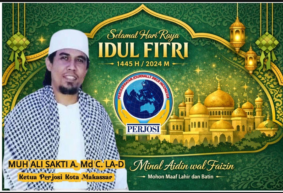 MAKASSAR – Menjelang berakhirnya Bulan Suci Ramadhan yang penuh berkah, Ketua PERJOSI Kota Makassar bersama seluruh jajaran menyampaikan ucapan Selamat Hari Raya Idul Fitri 1 Syawal 1447 Hijriah kepada seluruh masyarakat dengan penuh kehangatan dan nuansa persaudaraan.